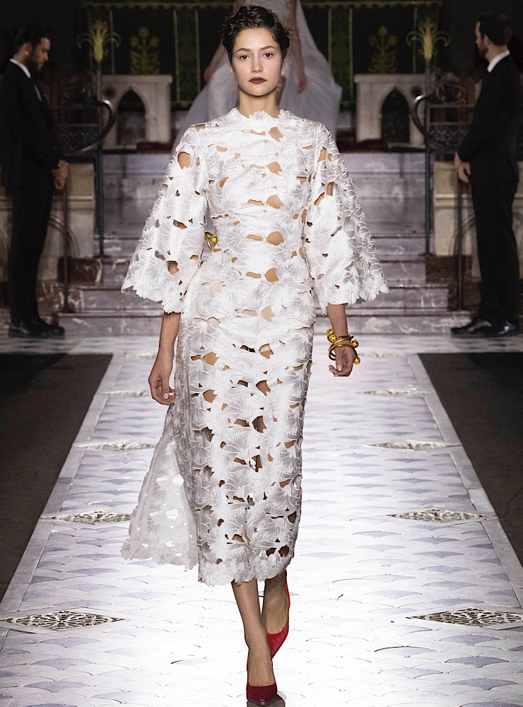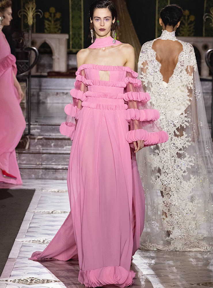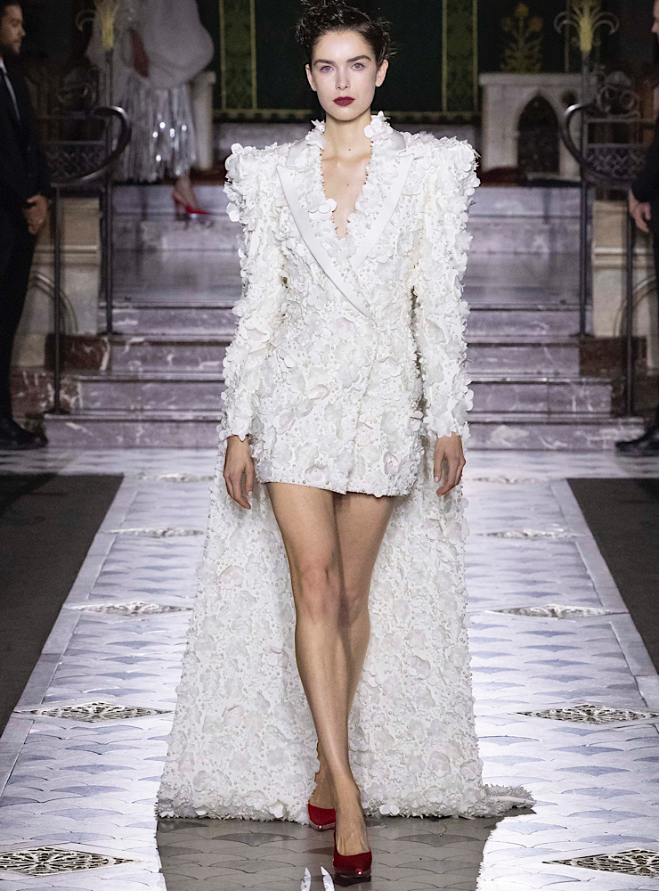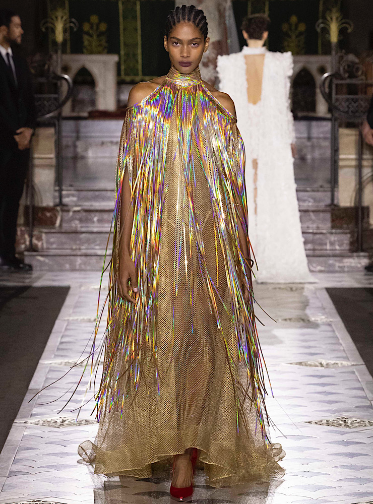 La colección Couture Primavera/Verano 2024 de Georges Chakra celebra lo extraordinario dentro de lo ordinario, inspirándose en el realismo mágico para crear un paisaje de ensueño y encanto sartorial. A través de una armoniosa fusión de lo cotidiano y lo místico, esta colección envuelta en una elegancia surrealista transporta a los espectadores a reinos de realidad mágica. Georges Chakra exhibe opulencia al tiempo que rinde homenaje a la influencia Art Déco que impregna cada pieza de la colección. Los motivos geométricos, las líneas audaces y los suntuosos adornos evocan la sofisticación visual característica de la época artística, mientras que la infusión del Art Déco con el realismo mágico crea una piedra de toque atemporal, enriqueciendo la narrativa y contribuyendo al esplendor visual de cada creación de alta costura.